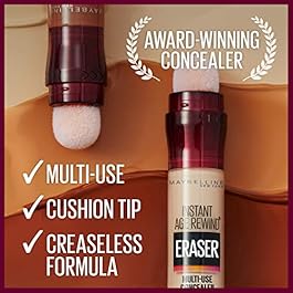 - MAYBELLINE INSTANT AGE REWIND CONCEALER: Erase the look of dark circles, correct the appearance of Redness and brigh10 the look of dull skin with Instant Age Rewind Eraser multi-use concealer. ANTI-AGING CONCEALER: Turn back time with this anti-aging under eye treatment concealer infused with Haloxyl. Say bye bye to the look of fine lines, blemishes, Redness, and dark circles, and…