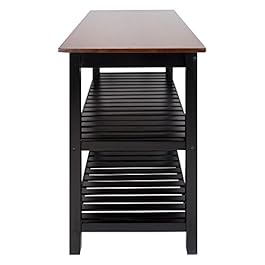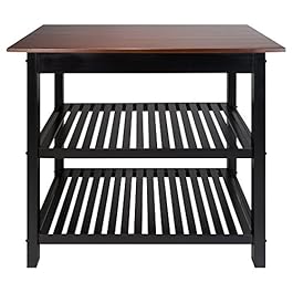 - Solid wood top for increased durability and longevity contrasts with the rich black finish seamlessly Convenient drawer pulls with a stainless steel handle to provide an enclosed space to keep your kitchen essentials Two (2) spacious lower shelves provide ample storage space for your kitchen essentials