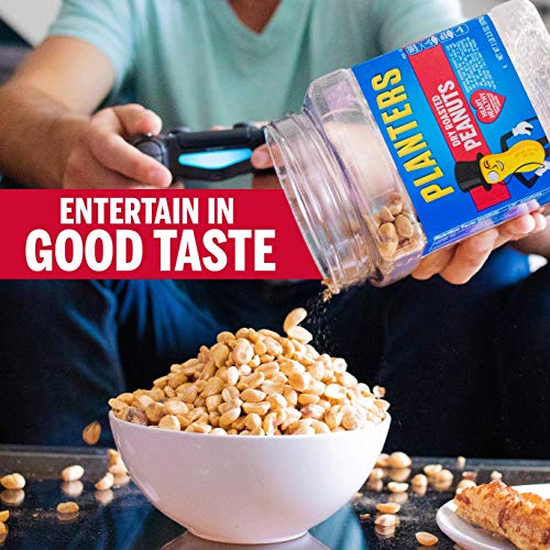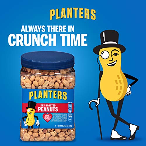Planters Dry Roasted Peanuts are there for you in crunch time, satisfying your cravings with irresistible flavor. Every batch of these peanuts are dry roasted to perfection, then seasoned with salt to bring out the nutty flavor. These salted peanuts make for a delicious snack that helps fill you up and keep you going. Because every serving is cholesterol-free and Kosher-friendly, these dry roast peanuts are great for sharing with family and friends. Stock up the pantry for game nights with this 32.5 ounce jar of dry roasted nuts, or divvy the large jar into small portions you can stash at work and in the car.
